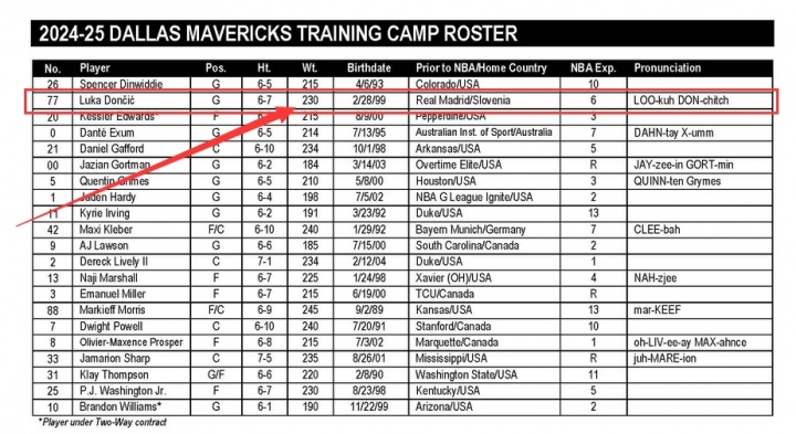 Related news: ESPN: Doncic's weight is close to 270 pounds. The Mavericks are very worried about this.
