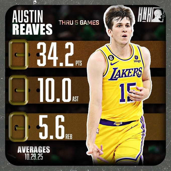 The US media released a chart of Reeves' season average data. He averaged 34.2 points, 10.0 assists and 5.6 rebounds per game. Former teammate Beverley reposted it with the emoji: 🔥🔥🔥🔥🔥!