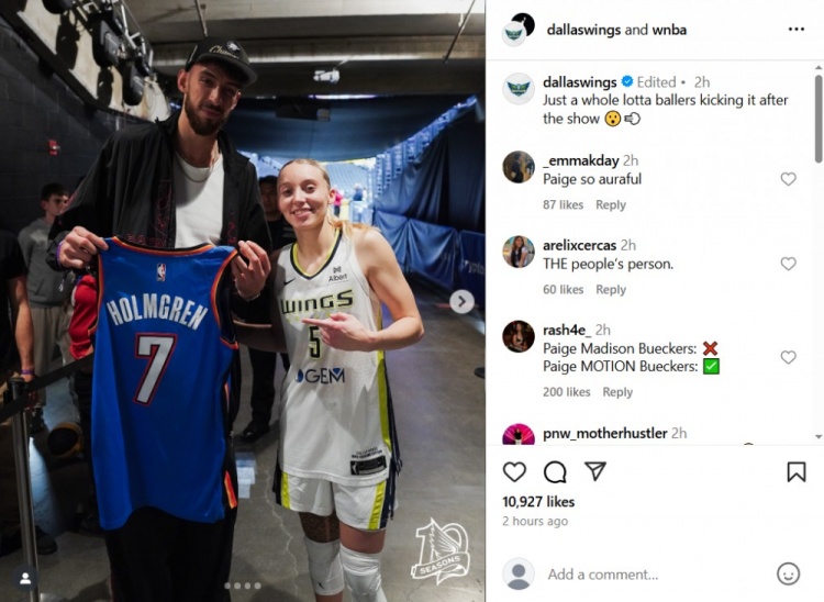 After the game, Fei Wings official posted a photo of Bux with Suns player Jaylen Green and Thunder player Chet Holmegren, and wrote: "It's just a group of big guys who gathered together after a wonderful performance😮💨"