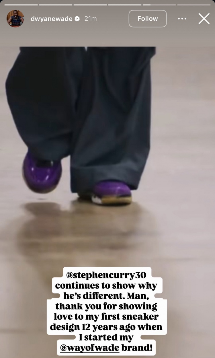 Wade updated his INS to talk about this, writing: "@curry once again proved why he is different. Thank you for your support and love for my first sneaker 12 years ago when Wade's Way was founded!"