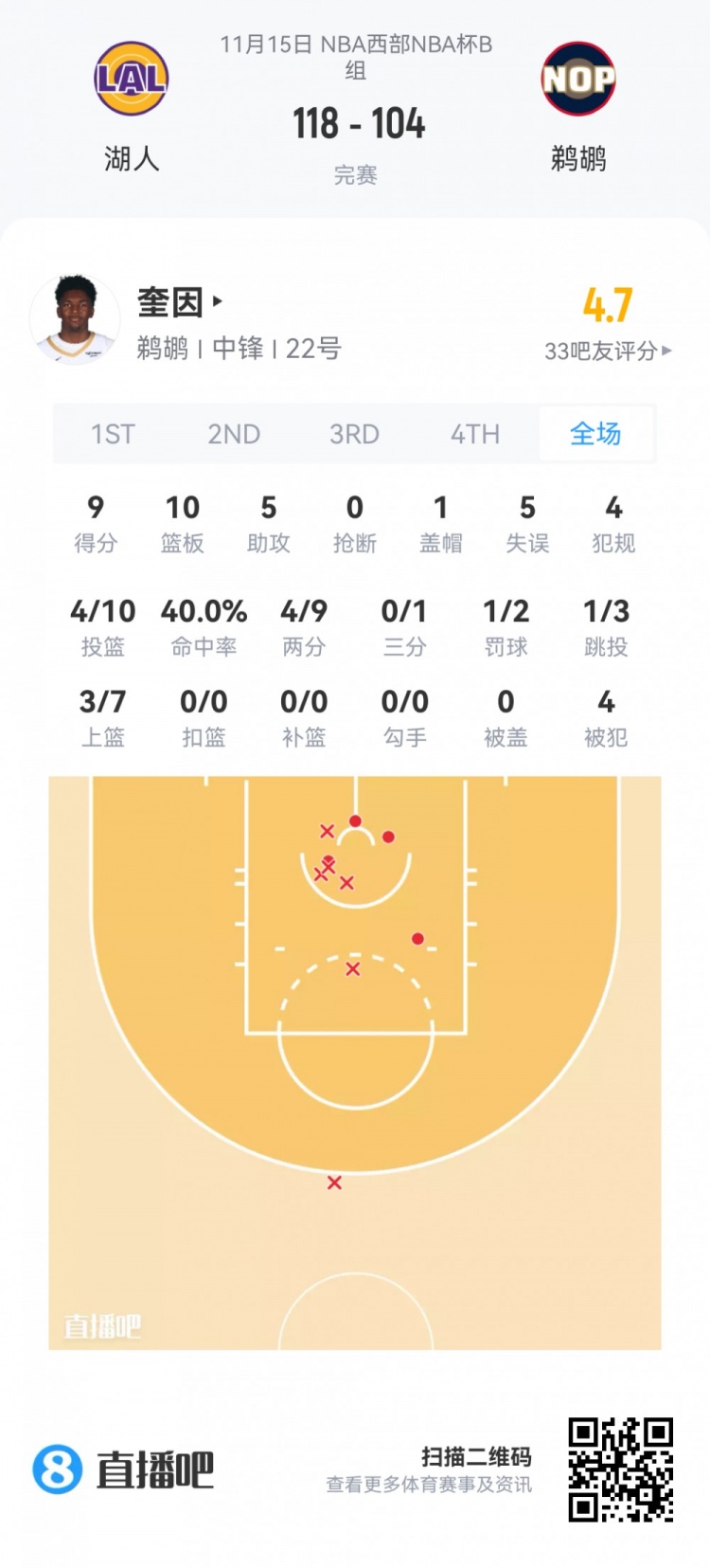 Derek Quinn, the No. 13 pick in the first round of the Pelicans, played for 29.4 minutes
