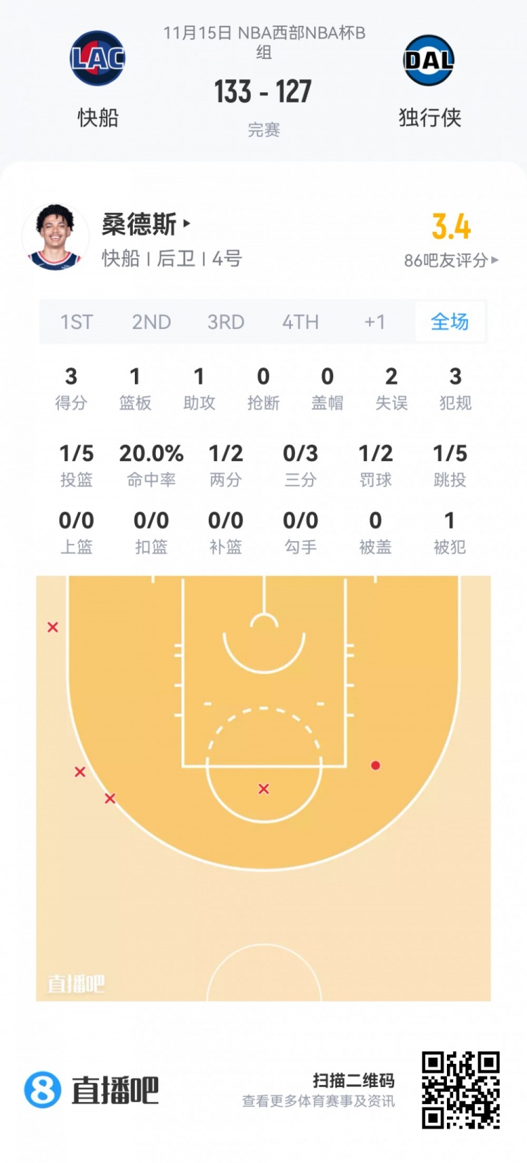 Kobe Sanders, the No. 50 pick in the second round of the Clippers, played for 13.5 minutes
