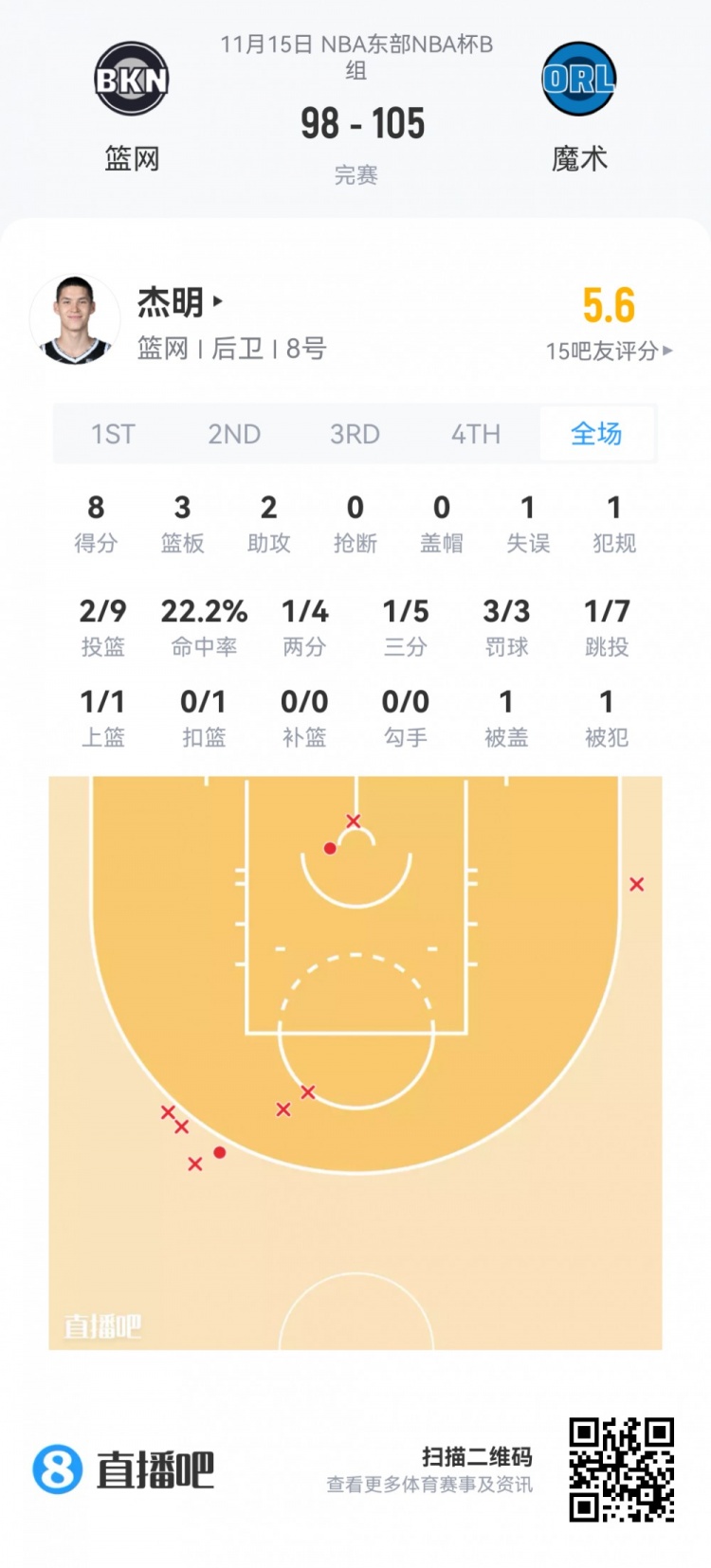 Yegor Jemin, the No. 8 pick in the first round of the Nets Played for 18.1 minutes