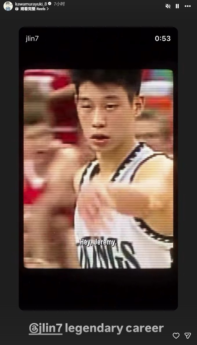 Today, Japanese defender Yuki Kawamura updated his social media and paid tribute to Jeremy Lin, who wrote: "Legendary career!"
