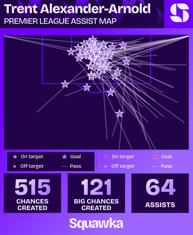 October 7th is the 27th birthday of Real Madrid's new aid Arnold. The English defender has performed extremely well in the Premier League, which has attracted the interest of Real Madrid. Squawka takes stock of some of Alexander-Arnold's important statistics in the Premier League.