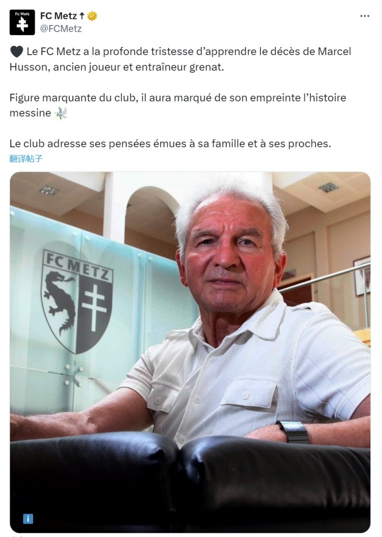 Mess former coach Marcel Husen passed away at the age of 88. The official social media of the Mess club published a message to express condolences.