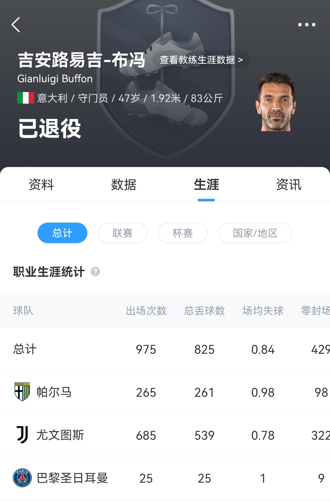 When Buffon announced his retirement in August 2023, his club played 975 games and the national team played 176 times.