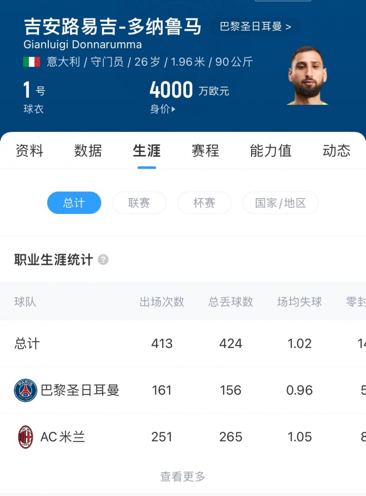 On October 25, 2015, Donaruma became the youngest starting goalkeeper in Serie A at the age of 16 years and 242 days. Now nearly 10 years have passed, Donaruma has completed 413 club appearances, and he is only 26 years old. At the same time, his Italian national team also played 74 times.