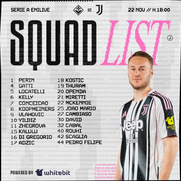Juventus announced the squad for the away match against Florence, led by Yildiz.