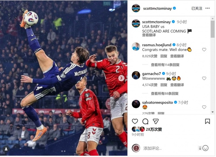 In the final round of the European preliminaries, McTominay scored with an overhead kick. Scotland defeated Denmark 4-2 at home and qualified for the World Cup. Denmark had to participate in the play-offs.