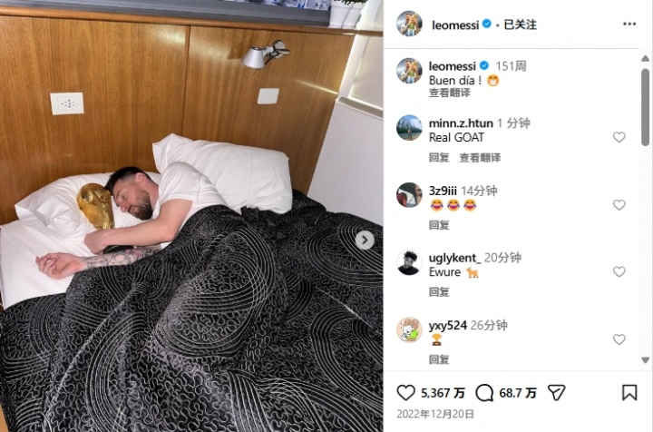 3-Messi’s social media posted a picture sleeping with the Hercules Cup: 53.67 million