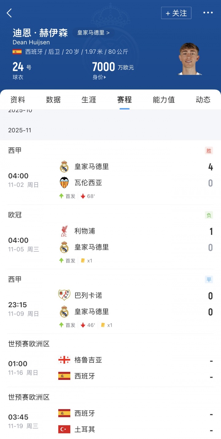 Real Madrid central defender Huizen was not selected for the Spanish team's match list tonight. According to TA reports, Huizen suffered from groin discomfort during his time with the national team and he is about to undergo a test.