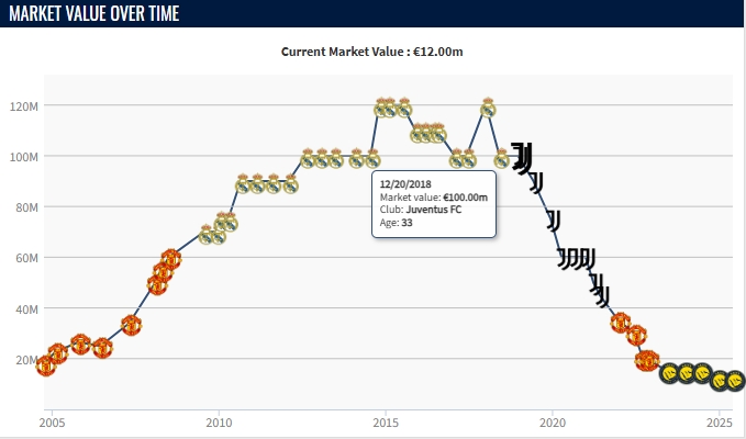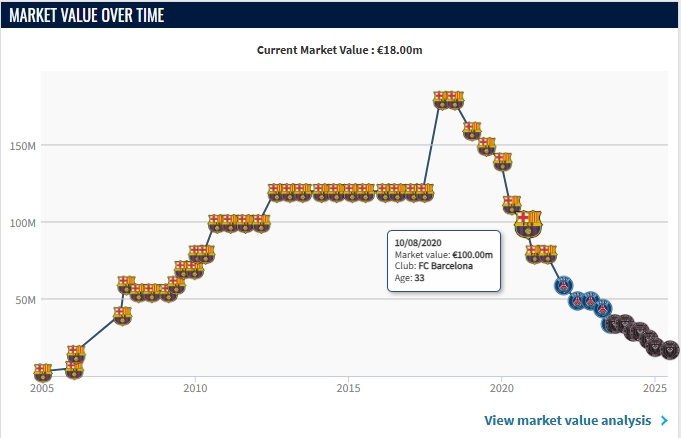 Neymar was once called the "third person in football" during the Meroz era, but his decline in recent years is sad. Ronaldo played for Real Madrid and Juventus at the age of 33, with a net worth of 100 million euros. Messi was still in Barcelona when he was 33 years old, with a maximum value of 100 million euros and a minimum value of 80 million euros.
