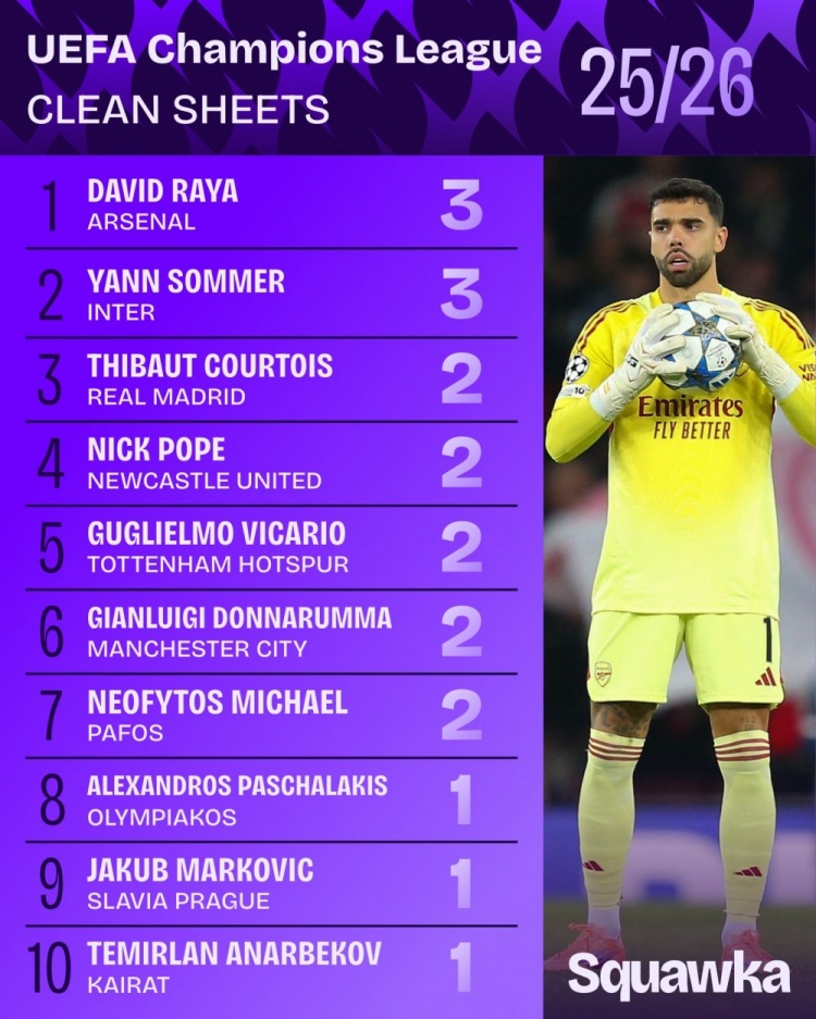 Squawka counted the number of clean sheets and saves made by goalkeepers in the Champions League this season and listed them.