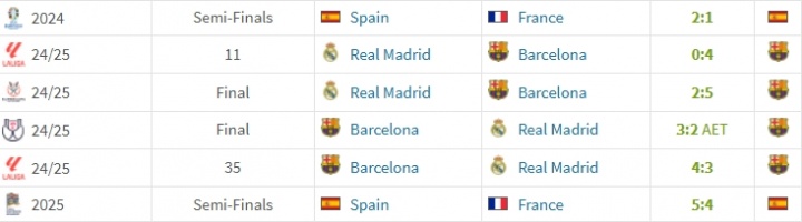 Records of Yamal vs. Mbappe in the past six games↓