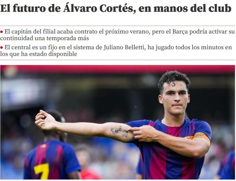 "World Sports News" reported that Paris Saint-Germain is interested in Barcelona B team captain Alvaro Cortez, and his contract will expire next year.